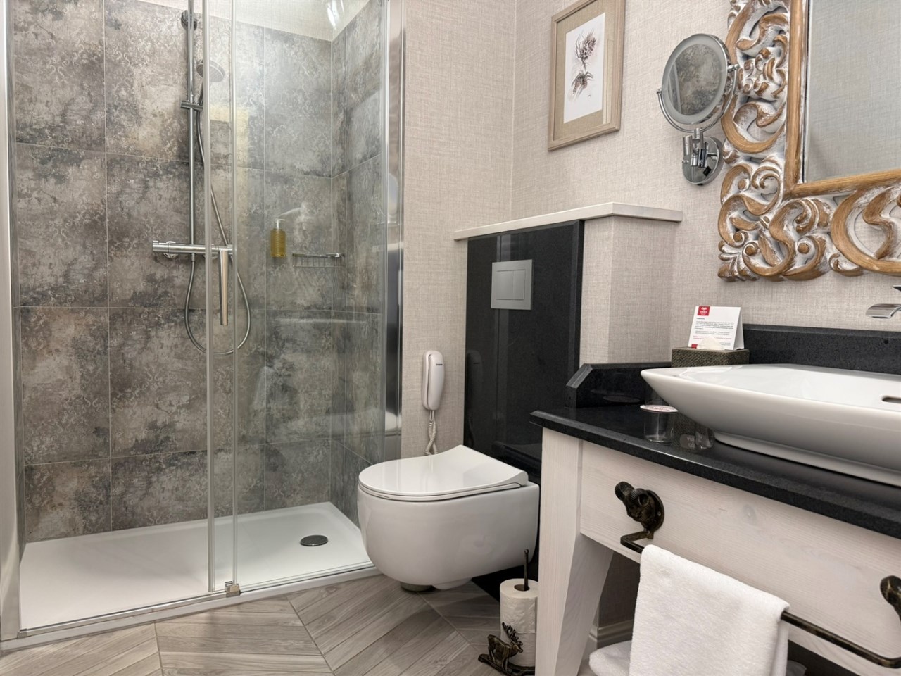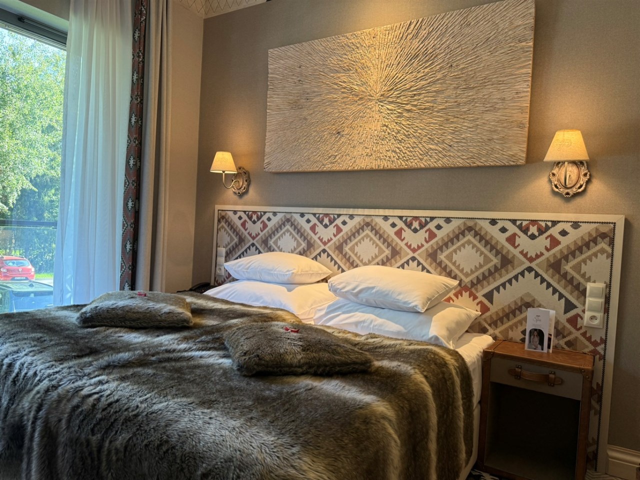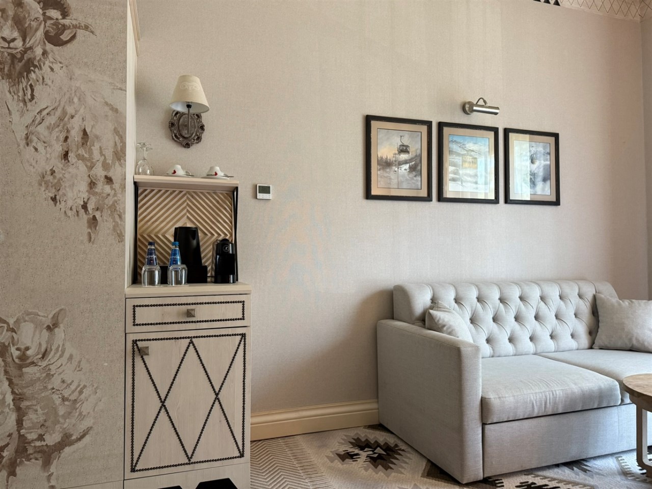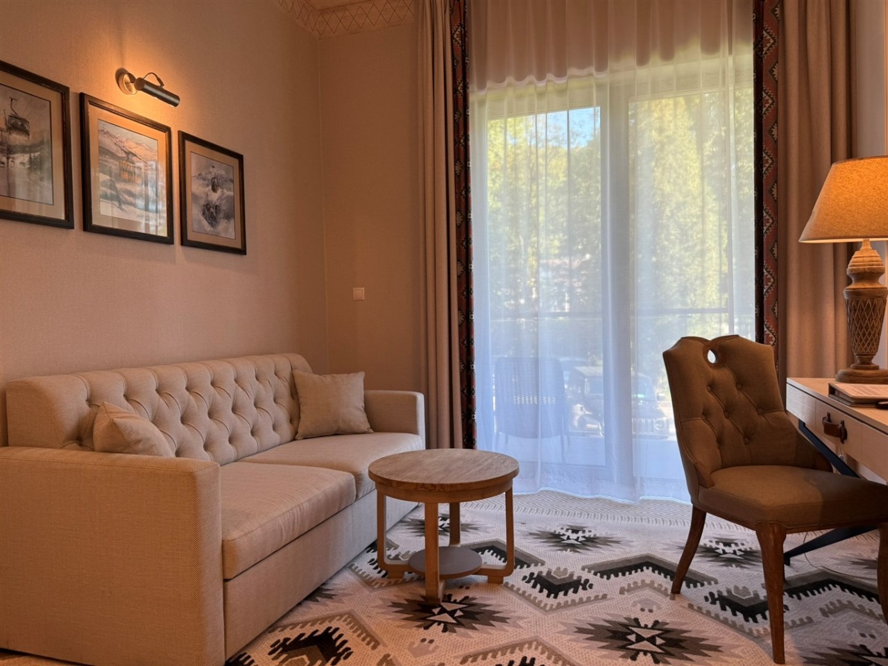 Lokal jest w pełni umeblowany i wykończony w wysokim standardzie hotelowym, spójnym i eleganckim, górskim stylem całego kompleksu. Komfortowa przestrzeń dwóch pokoi , łazienki oraz balkonu dokładnie składa się z: